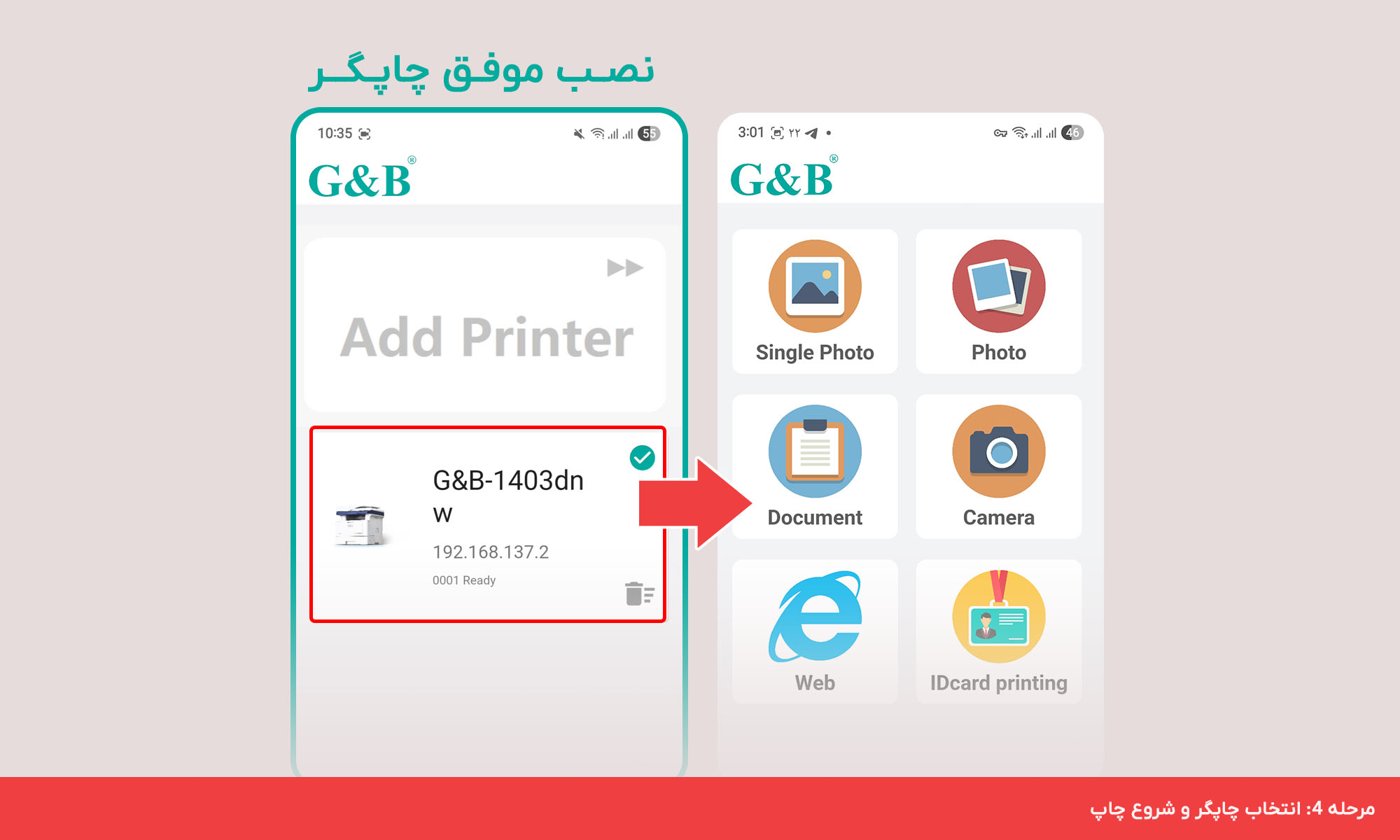 - پس از مشاهده تصویر و نام پرینتر (در صورت اتصال موفق)، آن را انتخاب کنید.