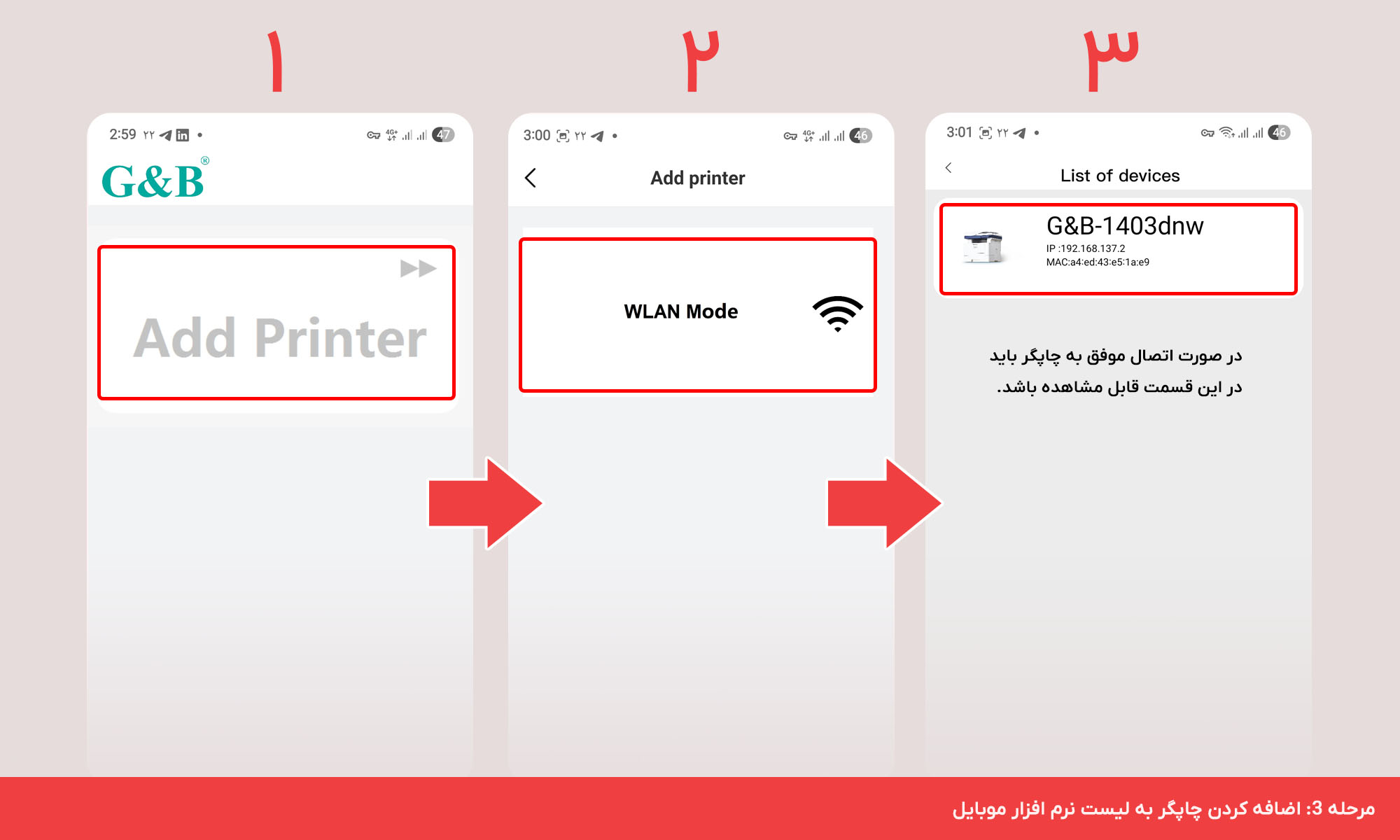 - پس از اسکن کامل Wifi نام چاپگر G&B در لیست نمایش داده می شود.